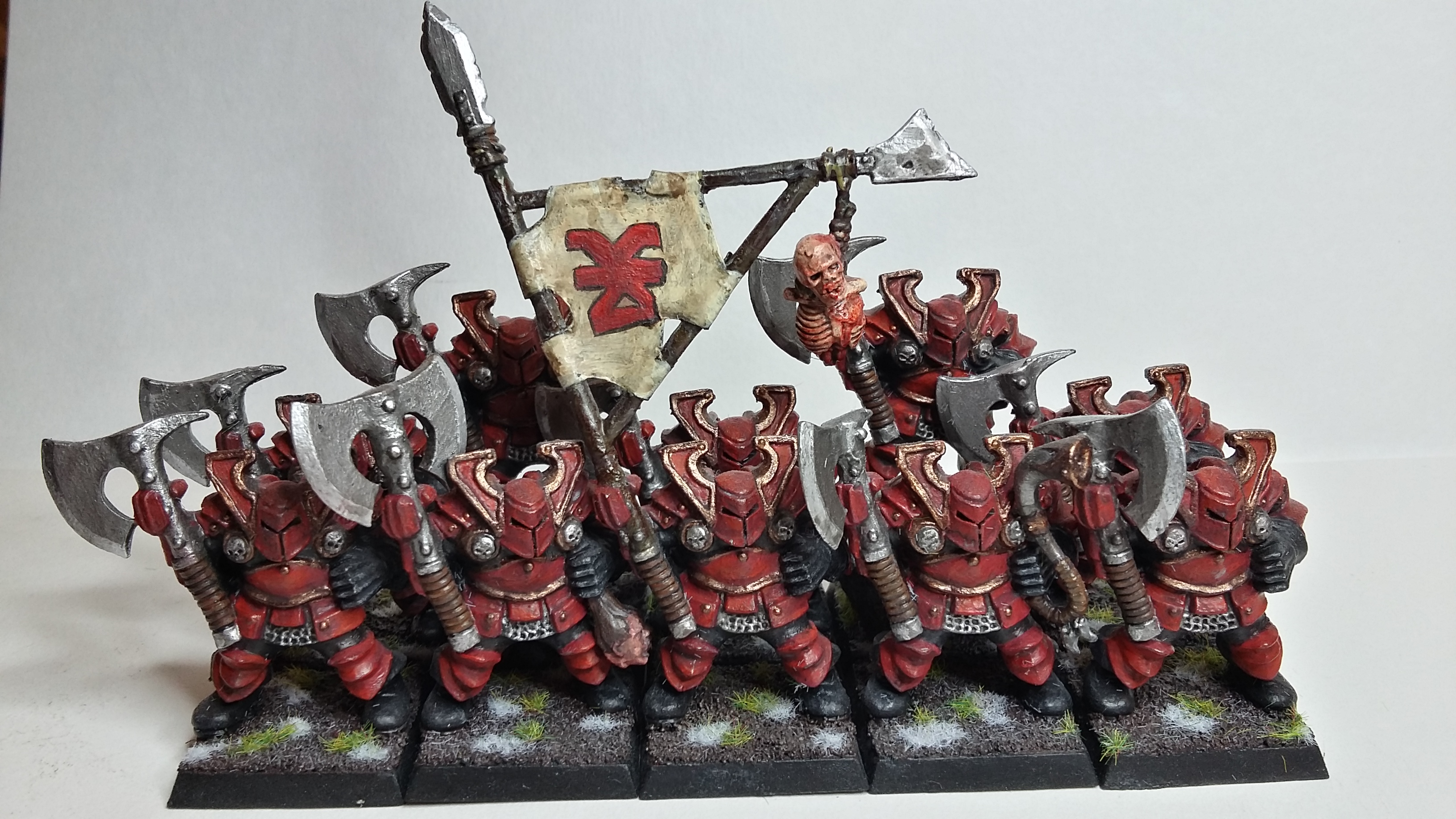 the 'Chaos Warriors #1 ' unit, especially the converted command group. Those monopose units always looked a bit weird with every model but three being the same and I think you have found a nice work around. The standard bearer is especially good.