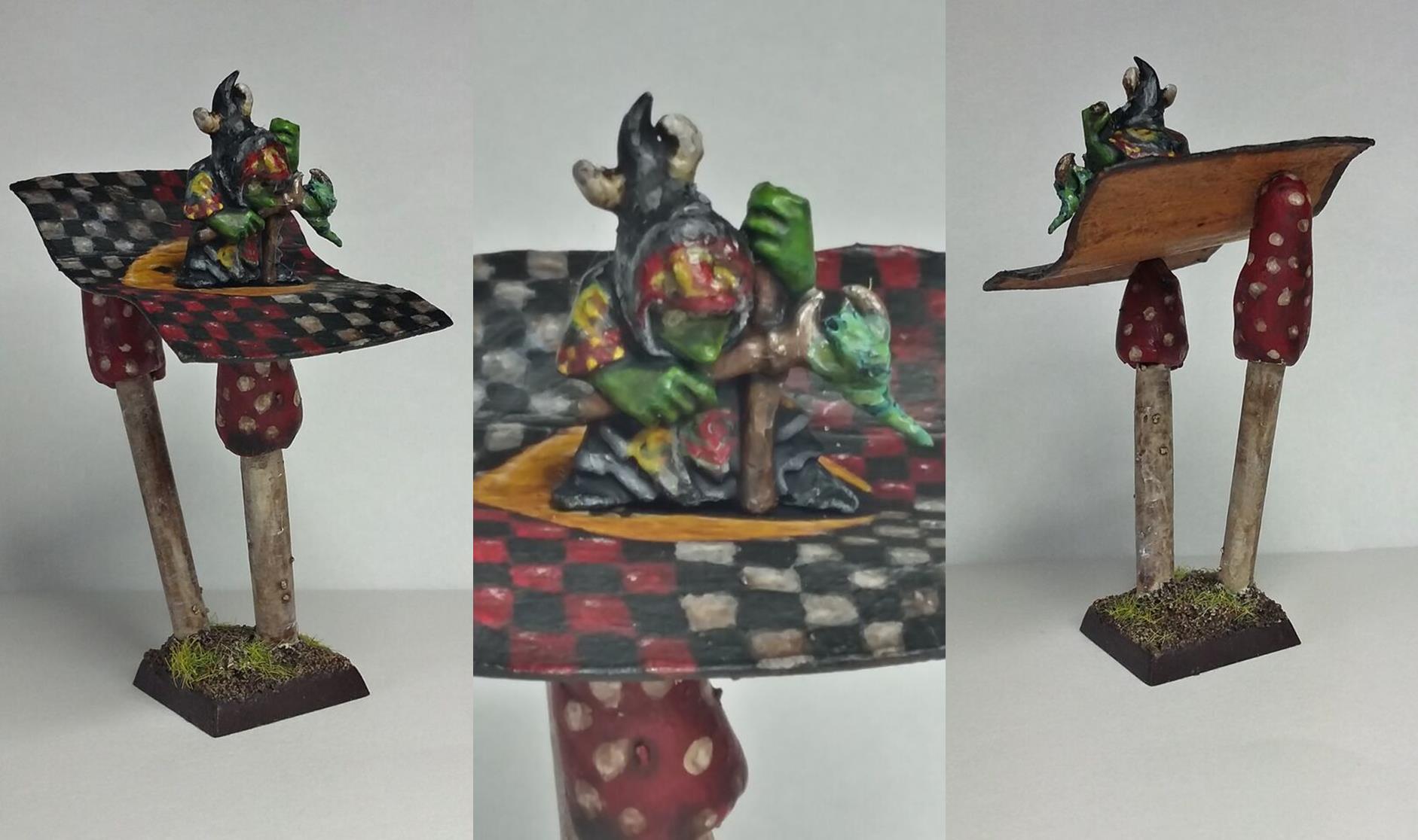 Here is my latest model, a converted night goblin shaman on flying carpet.