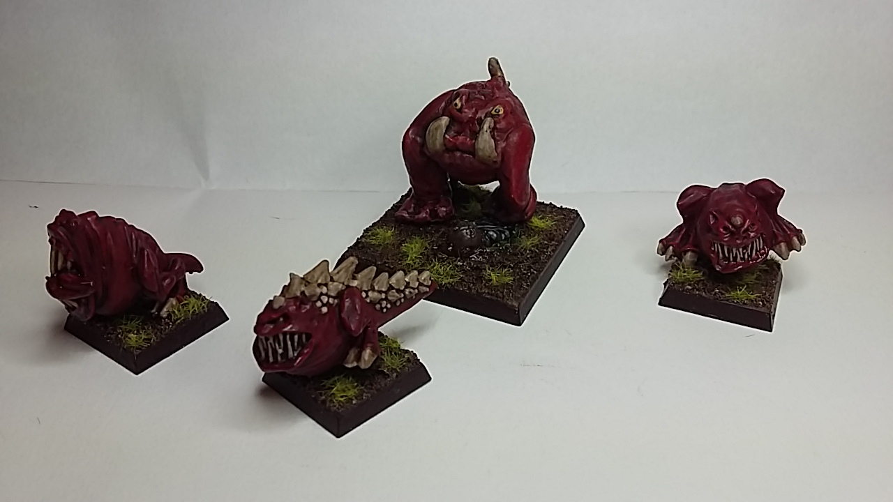 Now for Squigs! The giant cave squig in the middle was sculpted by me, whilst the sculpt quality is pretty bad I think it has a certain charm to it (could just be my bias though  ).