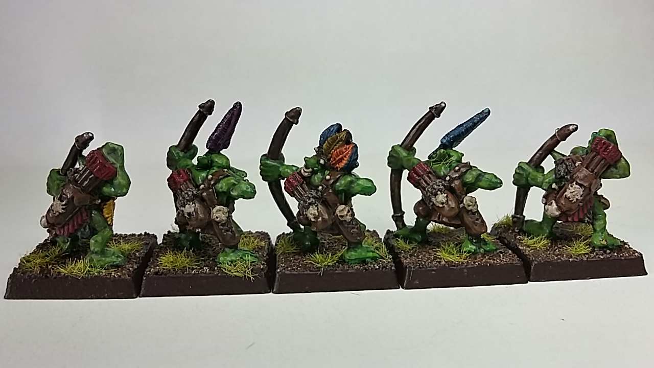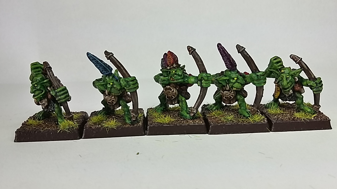 The models are from Titan Forge except the two with spears; they are converted from the Battle for Skull Pass night goblins.