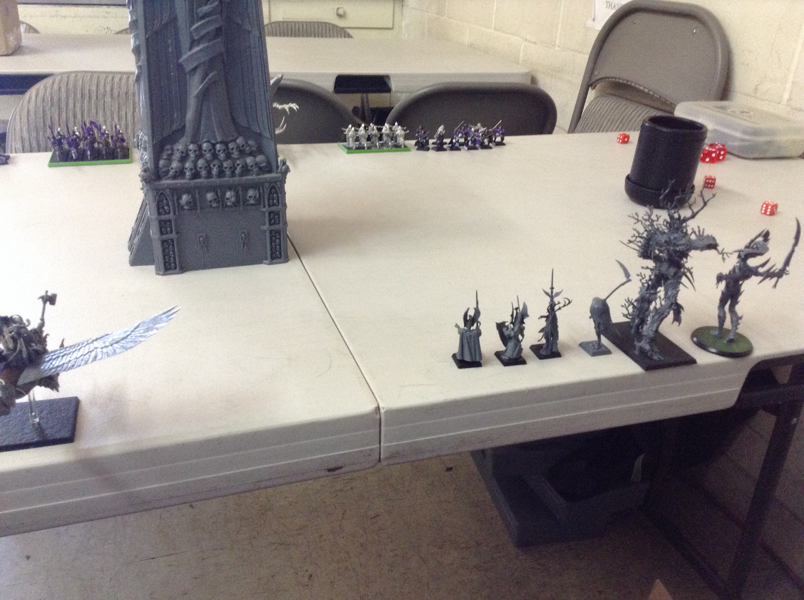 I brought many heroes, but we decided to simplify things by counting two of the elves as High Elf Princes, Caradryan, two counts-as giants, a wizard of life, and Karl Franz (or rather, my conversion, Koreleh Franzchik).
