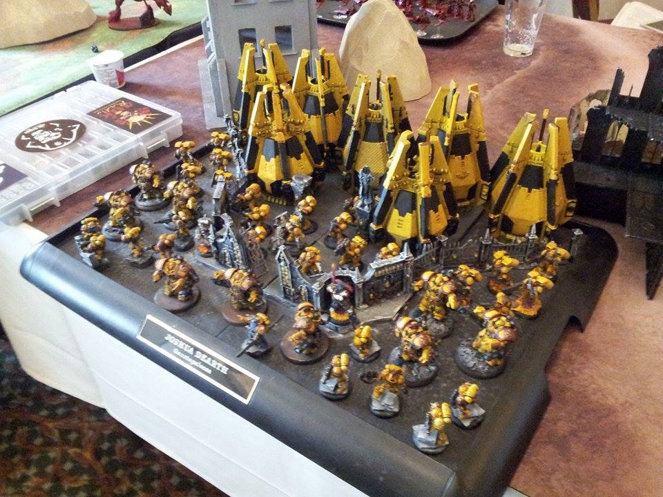 I am writing this post with a heavy heart today. I am visiting the Seattle area this past week attending TSHFT and am flying to DC next weekend for the NOVA Open. Unfortunately while visiting up in the Pacific Northwest my car was broken into last night and my entire army was stolen. I am posting in the forums here in hopes that if anyone by chance sees this army floating around somewhere maybe they could post a response on here and I might have a chance at getting some of it back. The army was a Firehawks chapter of Space Marines. There were about 60 Imperial Guard Steel Legion style models in it, as well as about 25 Legion of the Damned with custom greenstuff flame work on the models and bases. The tanks have tread plating on them and some battle damage converted onto them. I am including a picture of the tournament army part of what was in the case from this past weekend at TSHFT. Thank you for any help you might be able to give.