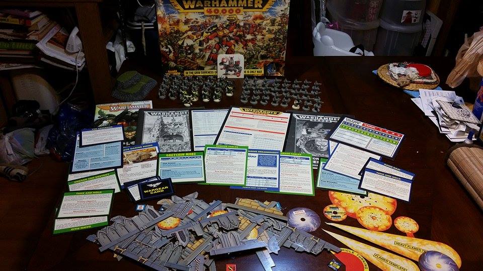 I also have the Warhammer 40k second edition box, not including the Space Marines. All of the Ork Miniatures are present (including 2 additional Ork boyz, and 1 2nd edition Warboss. I've listed out the complete content of what comes in the box, however this DOES NOT mean that everything listed is included because honestly, I'm too lazy to go through all of it to make sure it's 100% there, but based on the pictures most of it is. 6 of the Orks are painted, really, really badly, as is the Warboss. All the paperwork and cardboard elements are in great condition.