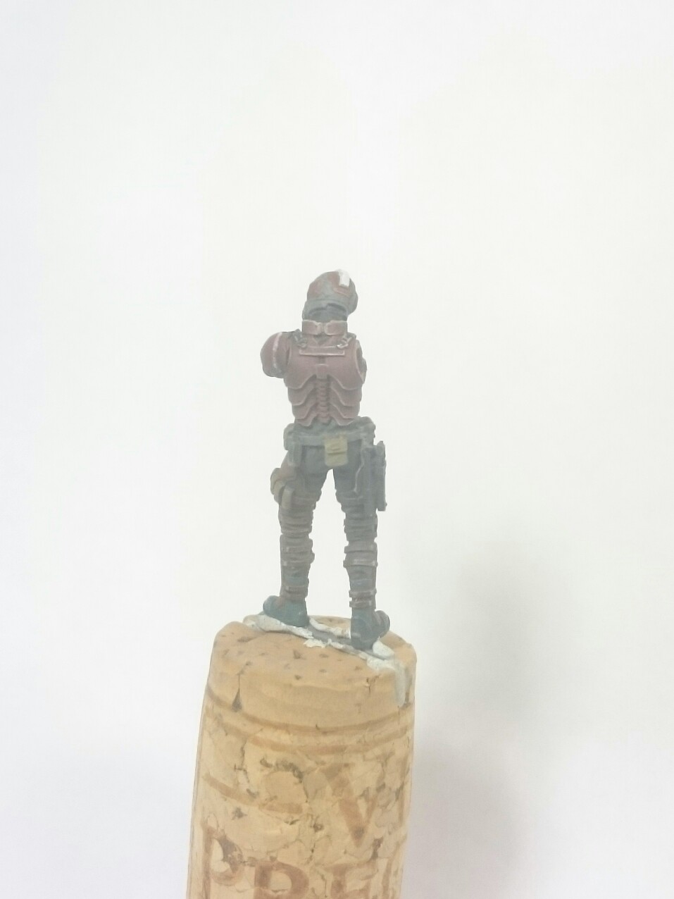Not much time, but I've started more details, helmet, the lower leg and back armour. I've also made a start to the trousers, a few layers of army painter dark tone in the shadow areas. I'm trying to apply that only in the dark areas rather than a wash over all, hoping to create more contrast that way.