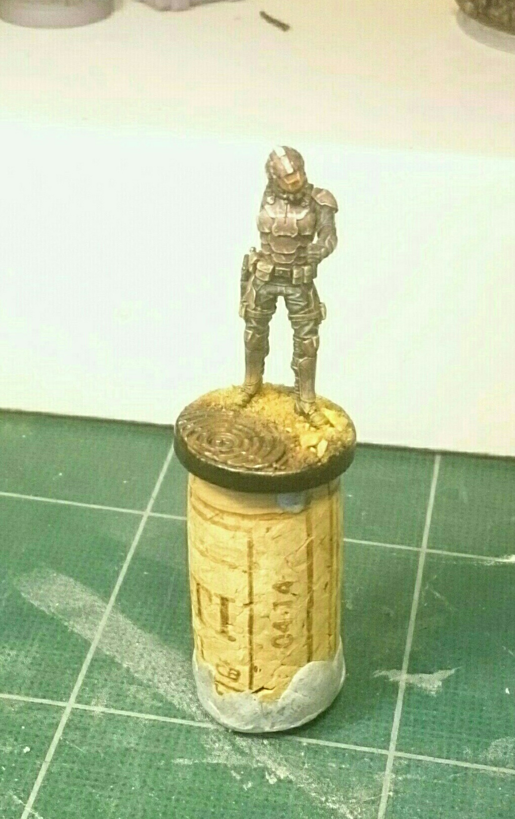 A couple of viral infections have taken their toll on my progress unfortunately but I'm moving forward and in the home stretch. Got him mounted on the Base, some weathering and about ready to attach his arm. Though as usual I'm sure he looks better in the flesh than the photo.