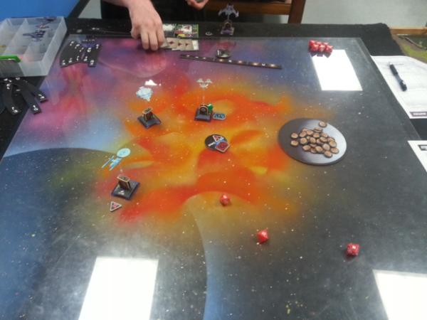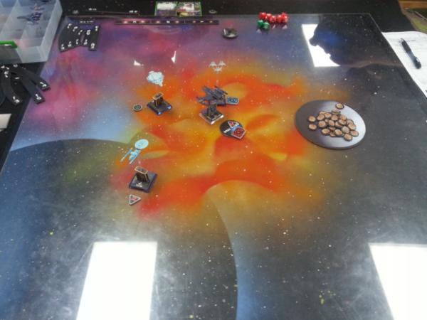 I had a momentary memory lapse and forgot that fighters only have a 3 instead of a 4 straight. So Khan had a momentary crash. Good thing everything was out range for real combat so I just grabbed two tokens for the moon.