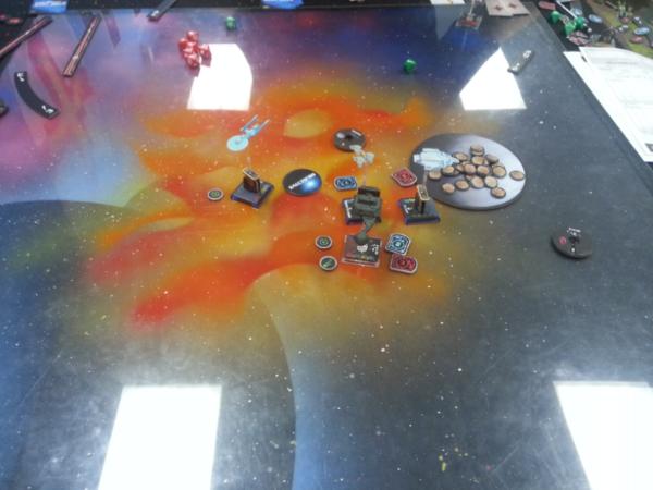 BS was hilarious. The 50 point Defiant is starting to become one of my favorite ships to play. It doesn’t deal a lot of damage, but it is a tough little ship. I may have to play this list again with a few tweaks. Sorry for the little white rectangles in the pics, it’s the reflection from the lights in the store.