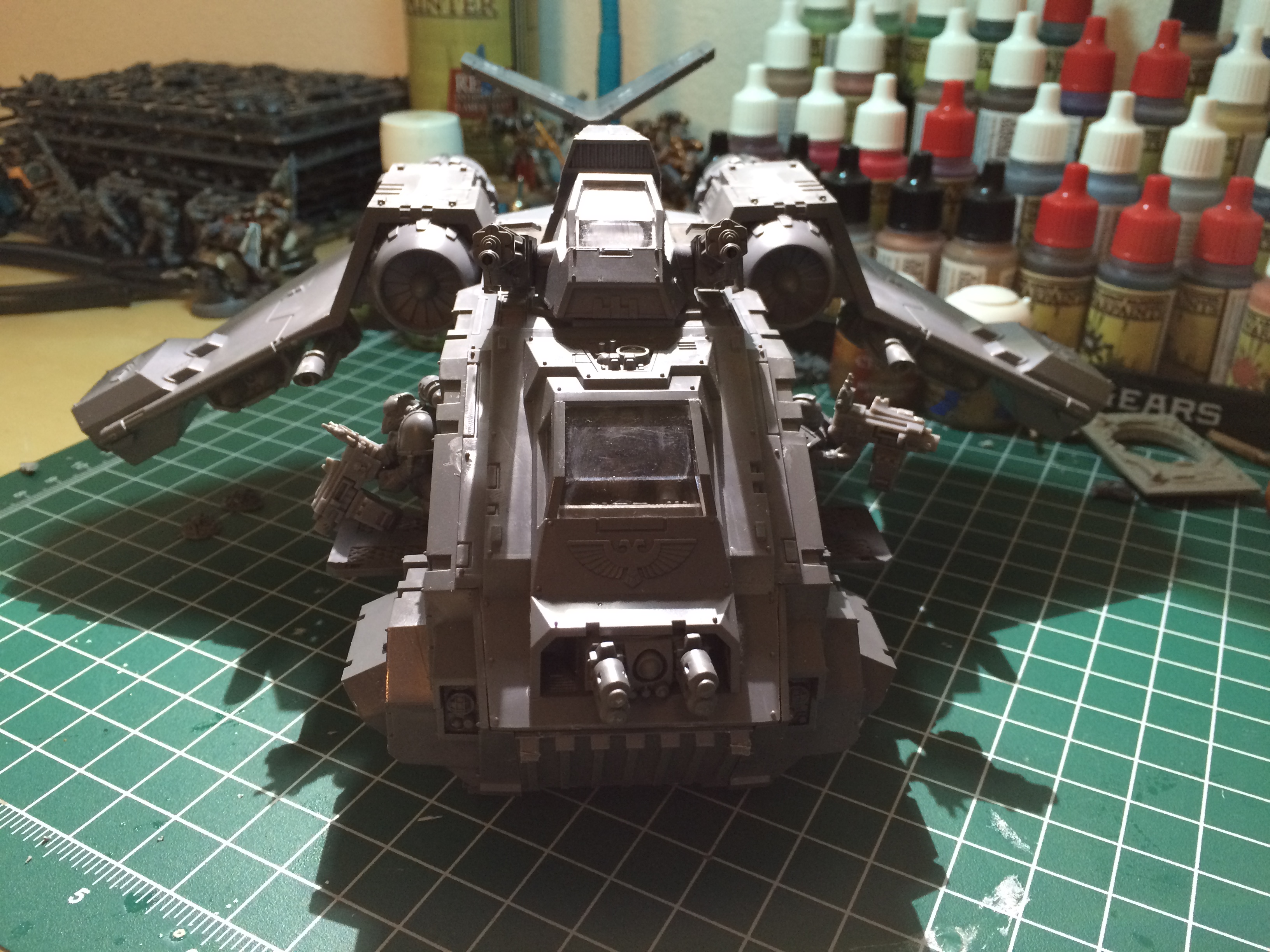 Personally, I'm not a fan of fully assembling the stormraven before painting -- I think it makes it nigh impossible to get all the details -- especially if you've opened both doors, you need to have the inside at least somewhat painted, since it will be visible from the side.