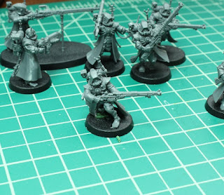 Got some color on le Skitarii. They are proving pretty easy to paint so far although I could have left the back packs off until after I painted the cloaks.