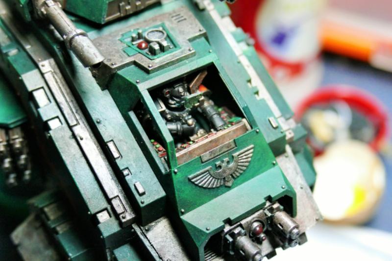 Second, I quite like the colour scheme you chose the black to symbolise that they are burnt and the green to indicate that they are a Dark Angles successor chapter but most of all I like how you have the ashed bone similar to the Death Wings' base colour for the Dark Angles to show that they are all prepared to die to repent and are ready to tackle the worst of the situations. I particular like it on the dread nought.