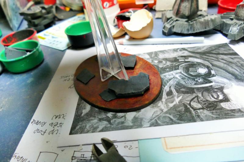 Lastly I painted the eggs shells to look like rocks (undercoat of Chaos Black, then a layer of Mechanicus Standard Grey and lastly a dry brush of Celestra Grey)
