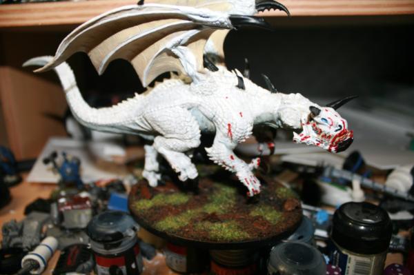 Cool stuff! Love the effect you get from the white and red. Only thing I'd suggest is a very thin grey wash around the scales, just to bring out the detail.