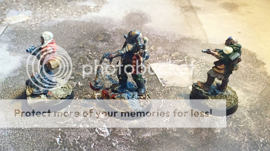 The guy in the middle is another cannibal made from IG, dark eldar, kroot and marauder bits.