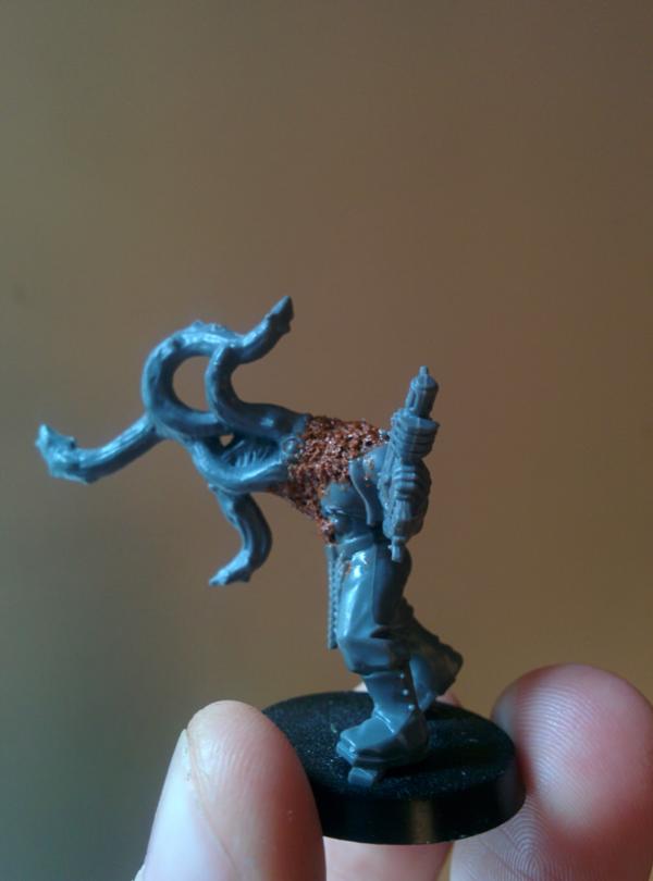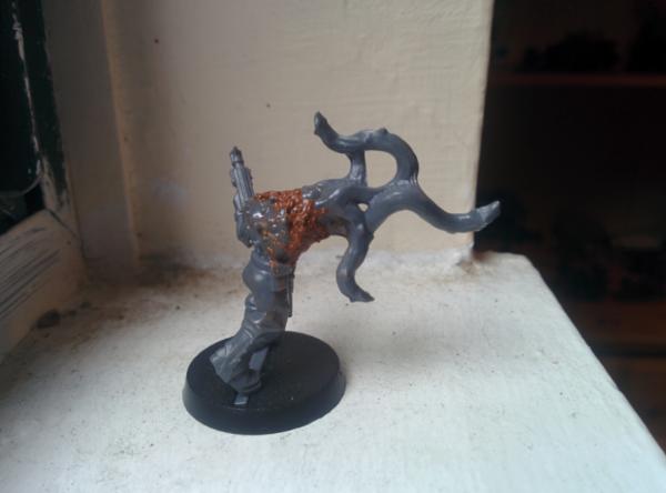 With a move coming soon I can't really commit to larger models so we've decided to work on theses fellows, a chaos sorceror and mutant that I've experimented with. the primer is drying as this is being typed so I'm curious how he's going to look painted.