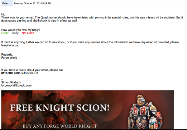 As we all know, since 7th edition landed barrage weapons lost their pinning rule. This left the quad mortar in a curious prediciment as it has the Shellshock rule for pinning tests, but Rules as written lacked pinning now.