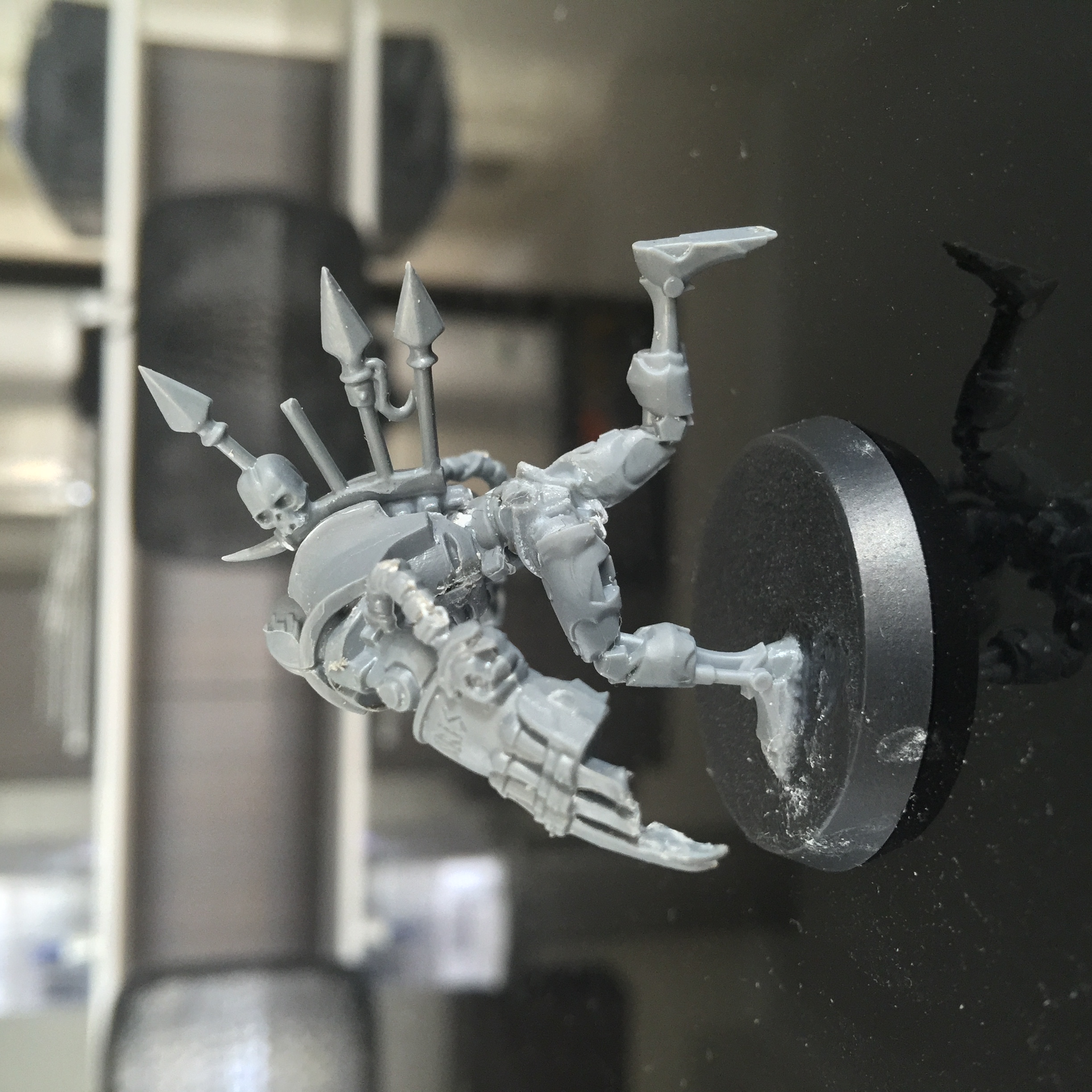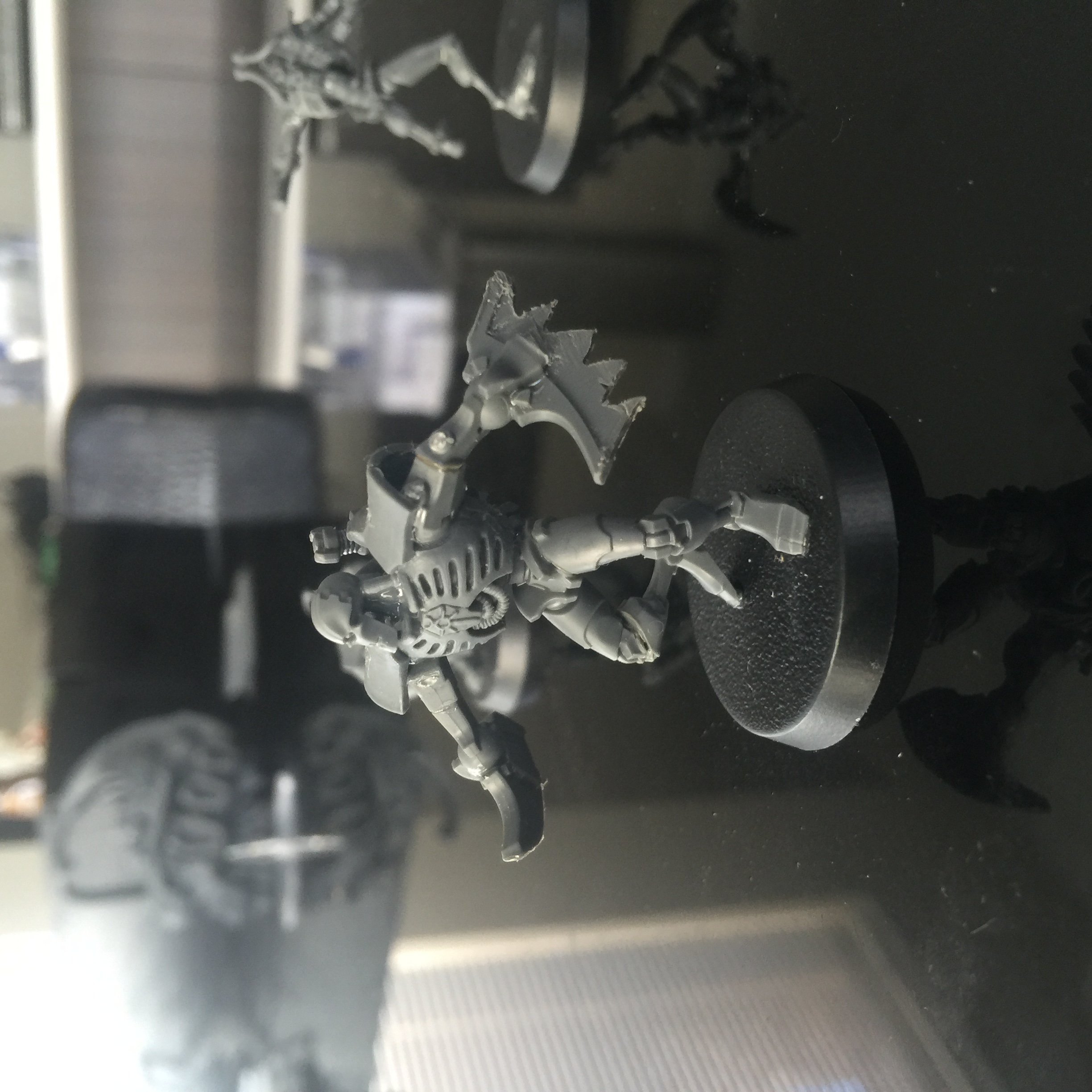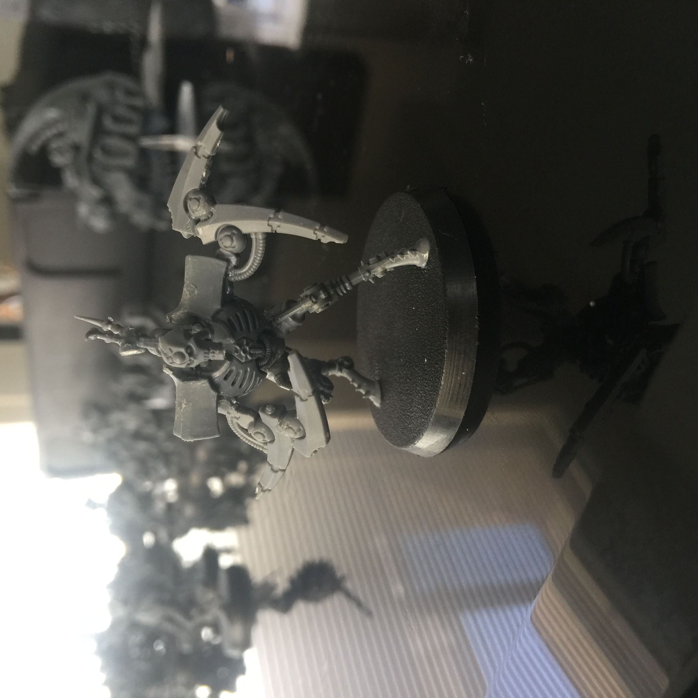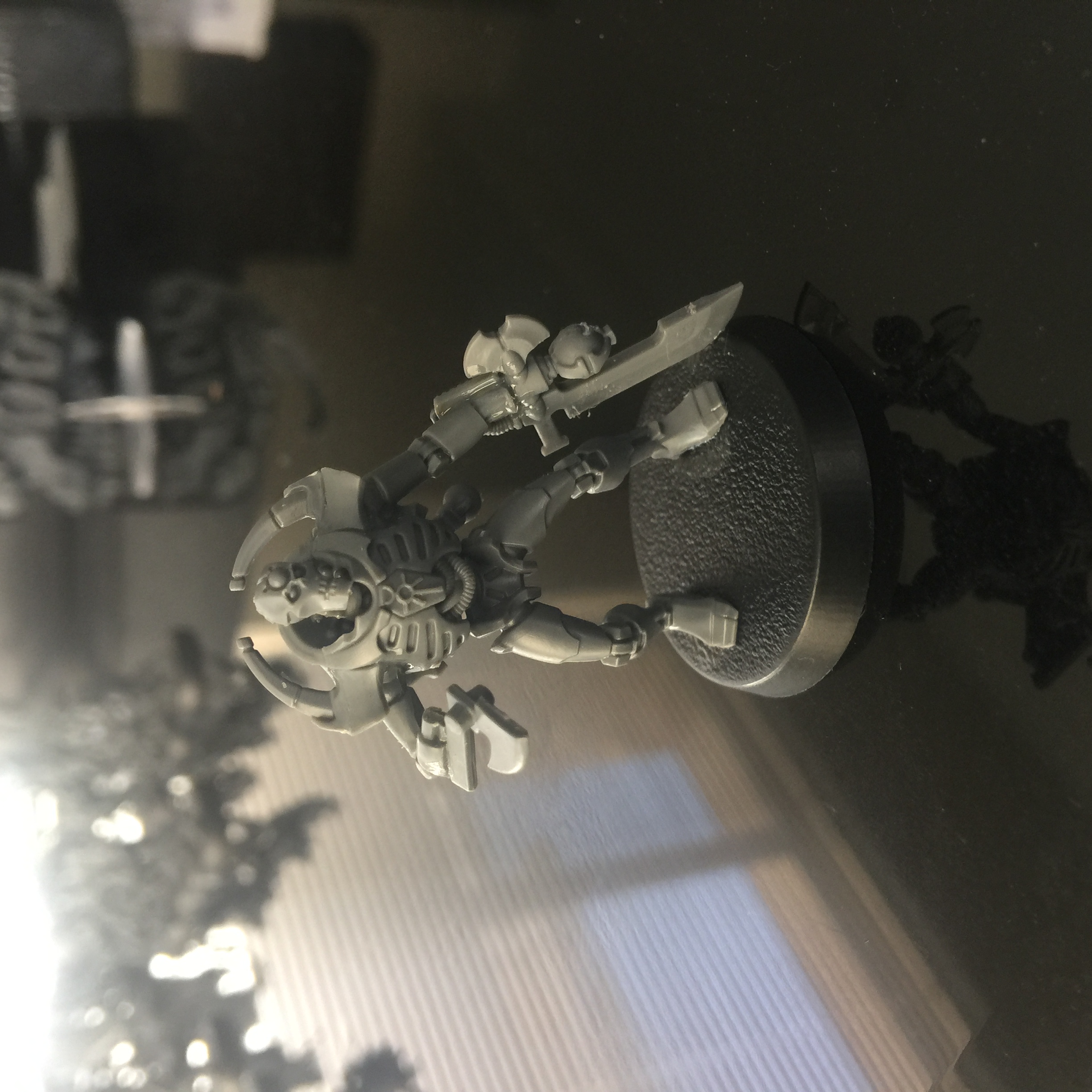 First post so bear with me in regards to layout/general mediocrity of post (done on my iPhone). Had a few bits lying around from my freshly bought necron army, and since flayed ones were sold out here in Aus until very recently I thought I'd make my own. I didn't really like the fluff in regards to them being skin lusting psychopaths, so I built them mostly as if they were destroyers who preferred close quarter combat to eradicate all life rather than shooty style. I built one as a flayed lord (easy to pick which one