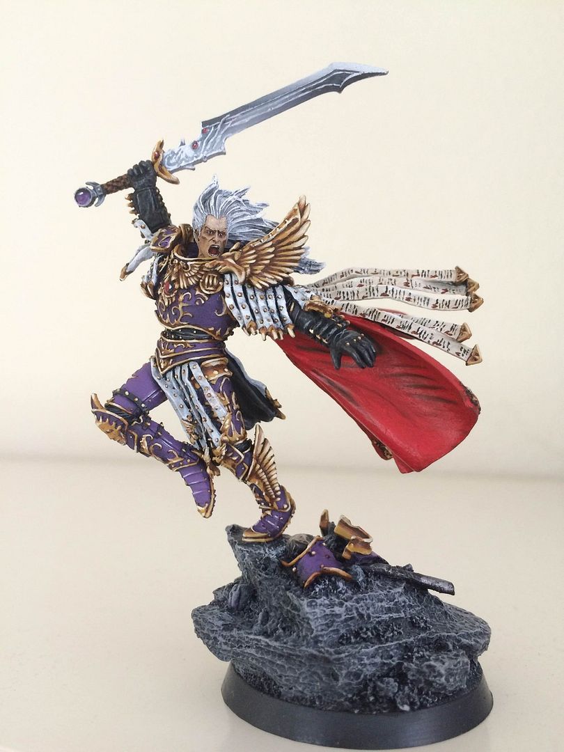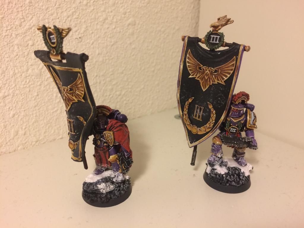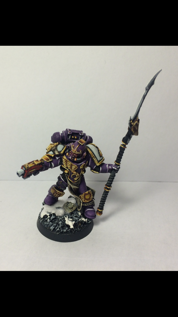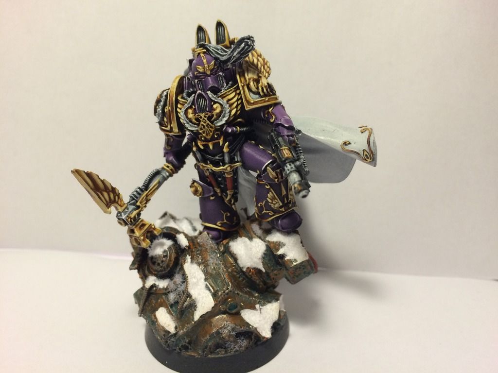 The purple's great, the snow bases provide a solid contrast and the whole thing's just wonderfully executed. Love the illuminated capitals on Fulgrim's scroll streamers.