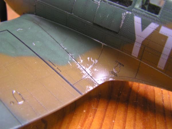 I normally apply my scratches with a sponge or with a fine detail brush. On my WW2 aircraft like this one (which were aluminium under the paint) I just painted on Runefang Steel with a fine detail brush, slowly building up the paint chips with a series of smaller scratches (rather than just painting a big blob).