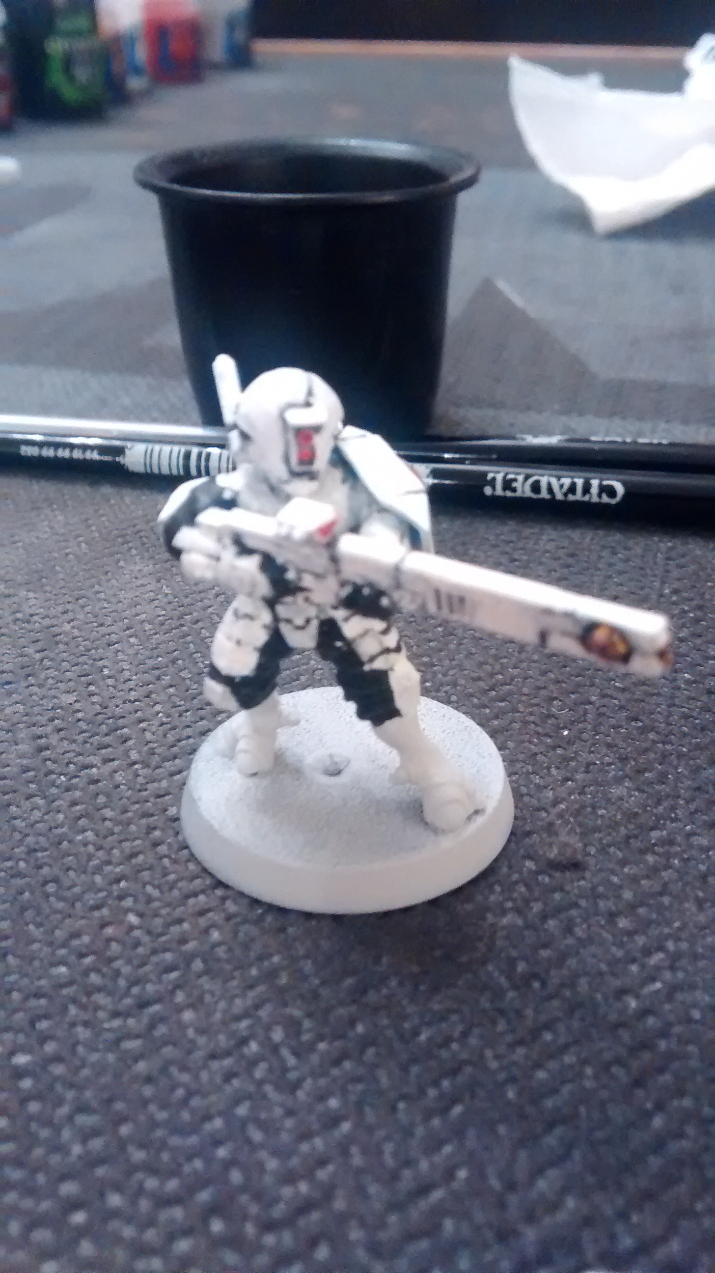 So just got back into the hobby after many years away and started to paint my new tau army. I oped for a white colour scheme similar to the one on the box but wanted a cleaner look. I painted my first fire warrior as a test and it came about alright (alot better than 10 year old me dis with my nids ) but he isn't quite right. The wash in the gaps was super easy to cover up and ruined the effect. I sprayed white, the added the black. Then k washed with nul oil and repainted all the white to make it, well, white. Any one advise on how to make it look better?