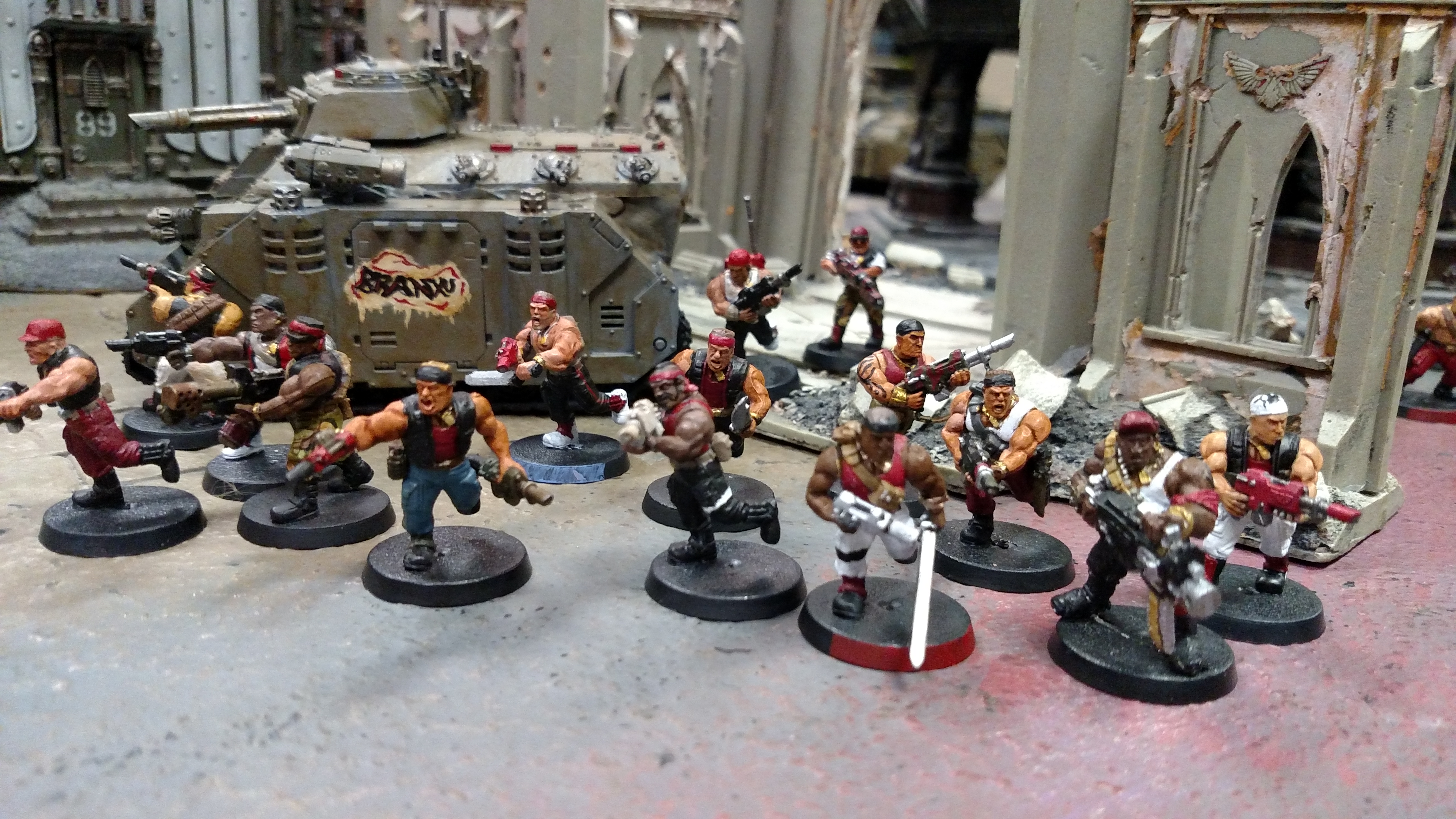 The next three pictures show off the infantry, the core is mostly Catachans painted to look like a mix of street gangsters and pirates (pic 3) but there are few special squads that I either use as veterans or regular soldiers, the one I'm showing off is the all female squad "The Furies" they are made from a couple kits I bought from Victoria Miniatures and some