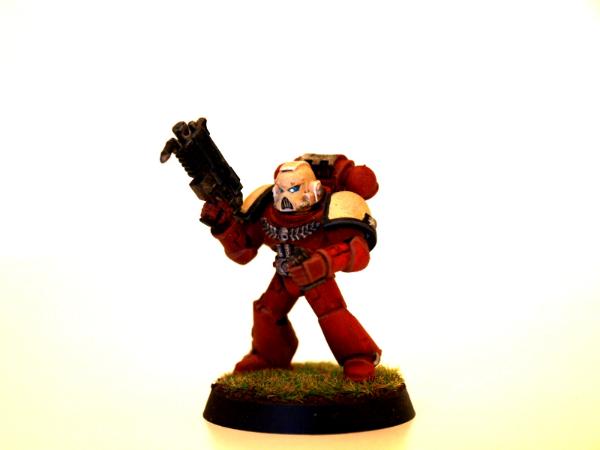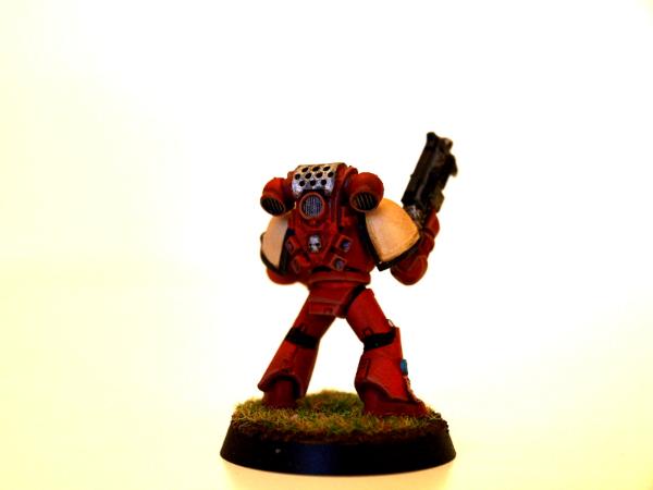 Sergeant, front and back. With red already being used for the armour, I decided using bone, their secondary colour, was a codex-appropriate Sergeant marking.
