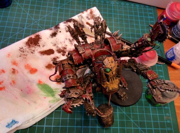 In the first 2 months of starting again I worked hard and fairly quickly to get 30 boyz, a warboss on bike, 5 bikes and 2 deffkoptas done. The models are beautifully sculpted beyond compare to the ones i had before. So detailed and well made. My previous orks were mostly from the ‘space orks’ box with 36 models and enough bits to last a lifetime (anyone remember this? ). I had my first 500pt game against my brother (3 games in a weekend) in early march. They were awesome. I won’t give the full run down but i now have a nice 1500 points list (including 80 foot slogging boyz) with loads of interchangeable elements, so i never play the exact same list twice. I’ve loads of things left to get and also a load to convert. I’ll be quite busy for the next year. The last 2 months I’ve dedicated to making some terrain and I’ll make a board in spring when i can work outside a bit more. I also went to the ‘battle brothers’ event at Warhammer world in November with my brother (ork and chaos) and it was great fun.
