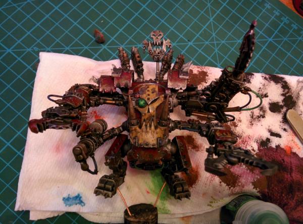 I love the painting and modelling side and the gaming comes a second to it, but i do enjoy it very much too. I’m far from a good painter and my ‘skills’ are just using my own combination of great techniques learnt from the truly great and innovative painters in the modelling and painting threads. This year my wife bought me a ork deffdread (it was her favourite looking model from the range of kits that i gave her that were in the £20-30 range...) and i think it’s my best work yet, though far from finished. If any other keen painters want to give me any hints or suggestions for how to proceed (particularly with the teeth at the front) i’d be quite honoured =) I was thinking perhaps white, with the flaking paint effect of the rest of the red and yellow parts, but i’m unsure how well it will work. I'll use a better camera next time too.