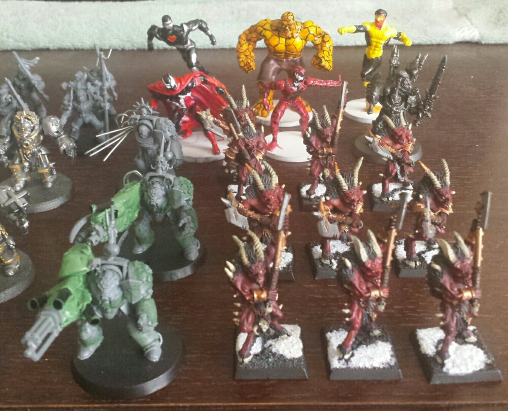 5 Spawns, scratch built. The thing, Spawn, War machine, Sinestro, Carnage