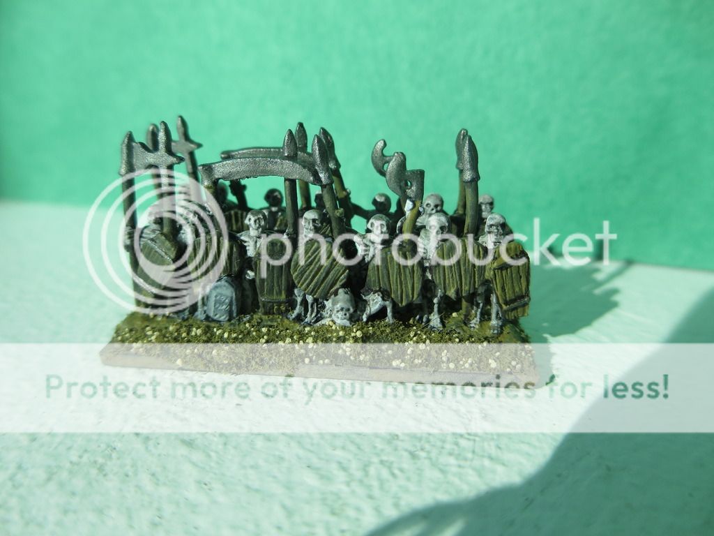 Finished up another unit today, Grave Guard this time. I didn't love these sculpts when I was painting them up (the weapons are too small, and skeletons look weird in armour at this scale) but I'll have to get over it because I've got 5 more units of these guys to finish.