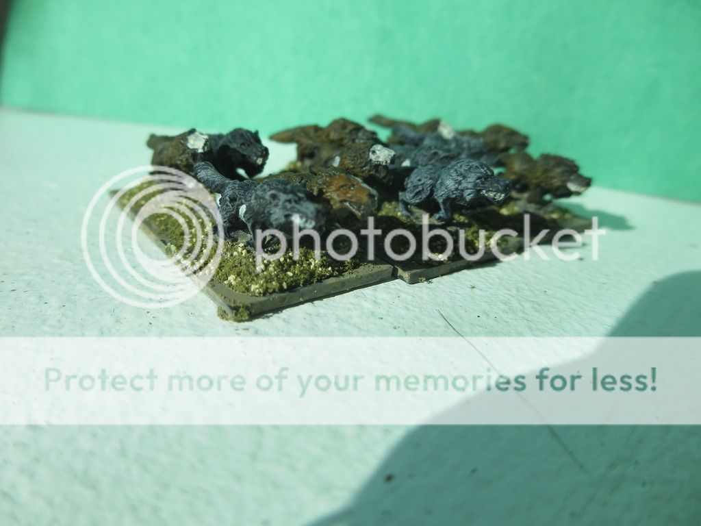 The deathless minions of the lords of night called to me from their drawer and I answered, resolving to paint them in a quick and easy fashion so as to get them on the table as soon as possible. So far the skellies and dire wolves have painted up nice and easy. I managed to do 4 regiments in about a week and a half.