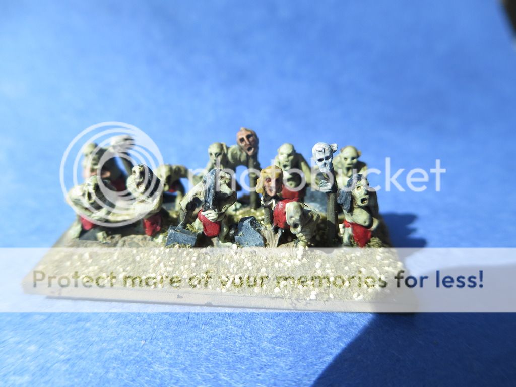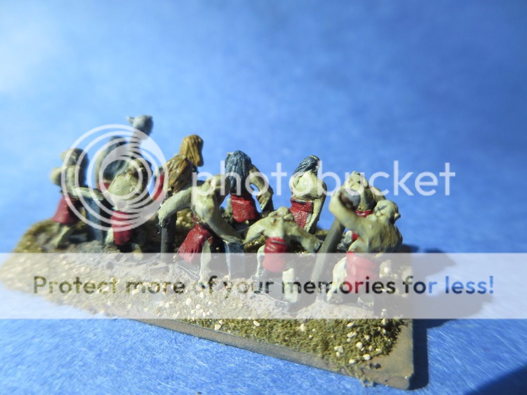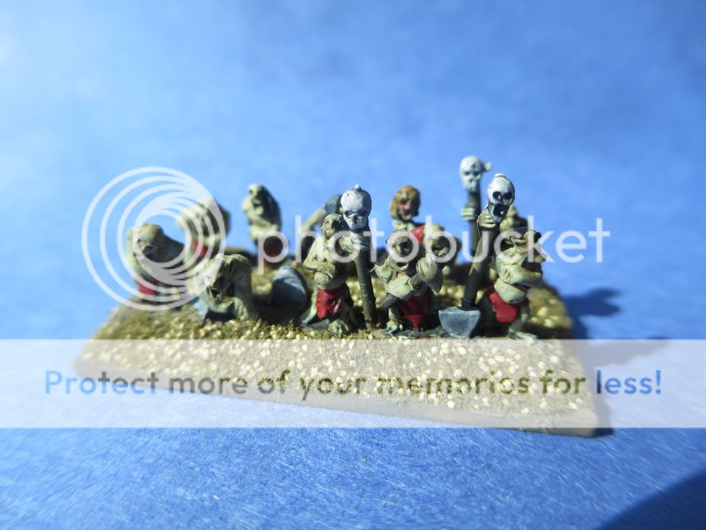 These figs are from Pendraken. One of the big differences from GW's warmaster figs is that these guys don't come in strips but as individual figs. It's a little inconvenient to paint them this way but I like how it allows you to play around with the basing.