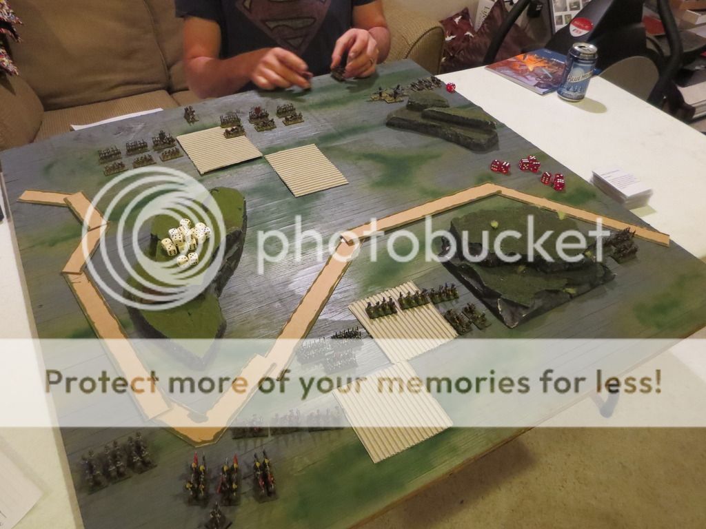 I managed to get in another game of Dragon Rampant using the 10mm figs. Much larger game this time (possibly too large) but it was fun seeing everyone laid out on the table.