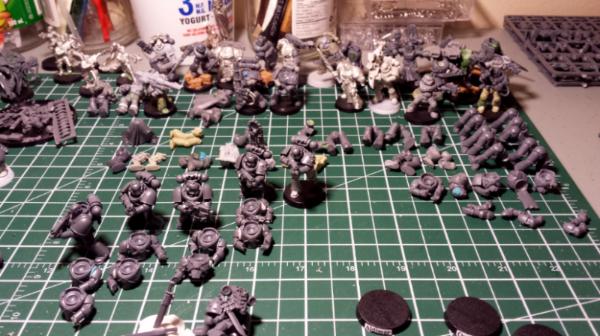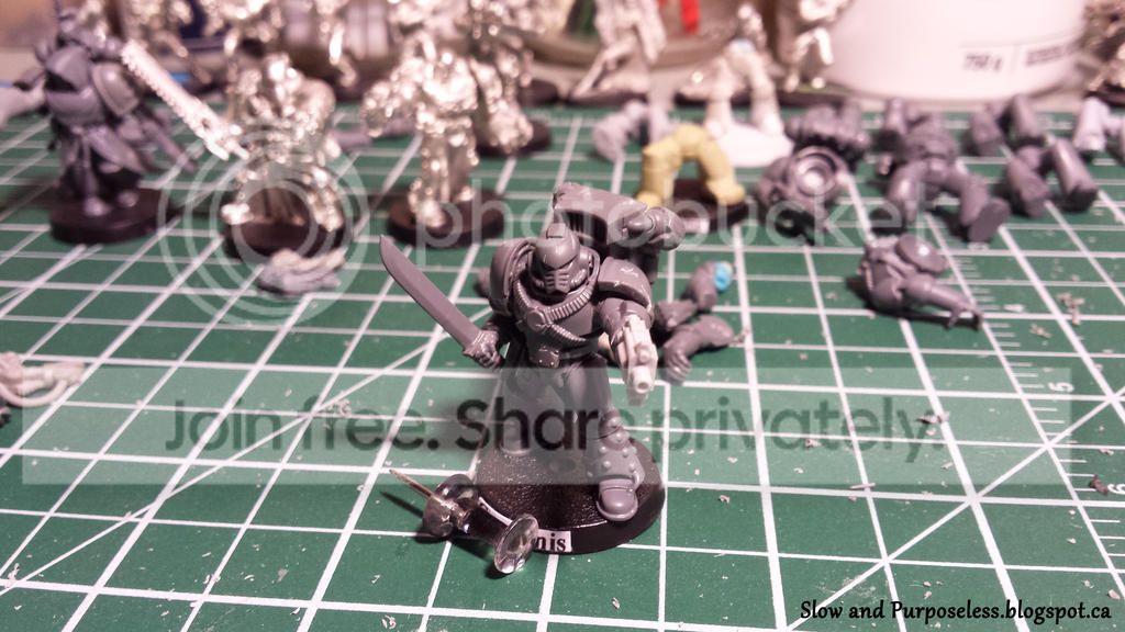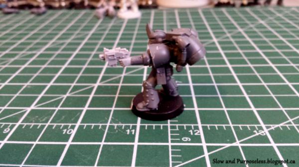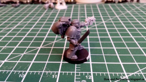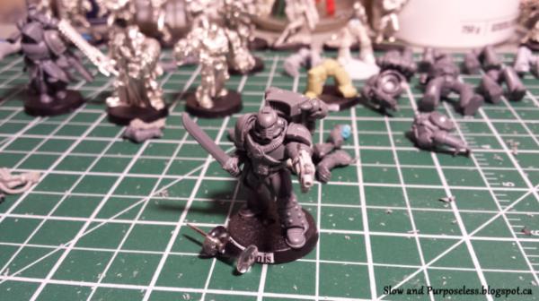 First, the cutting mat arrayed with Space Marine model madness! I have a bad habit of moving onto another model as inspiration hits me. (Or ADD, I dunno