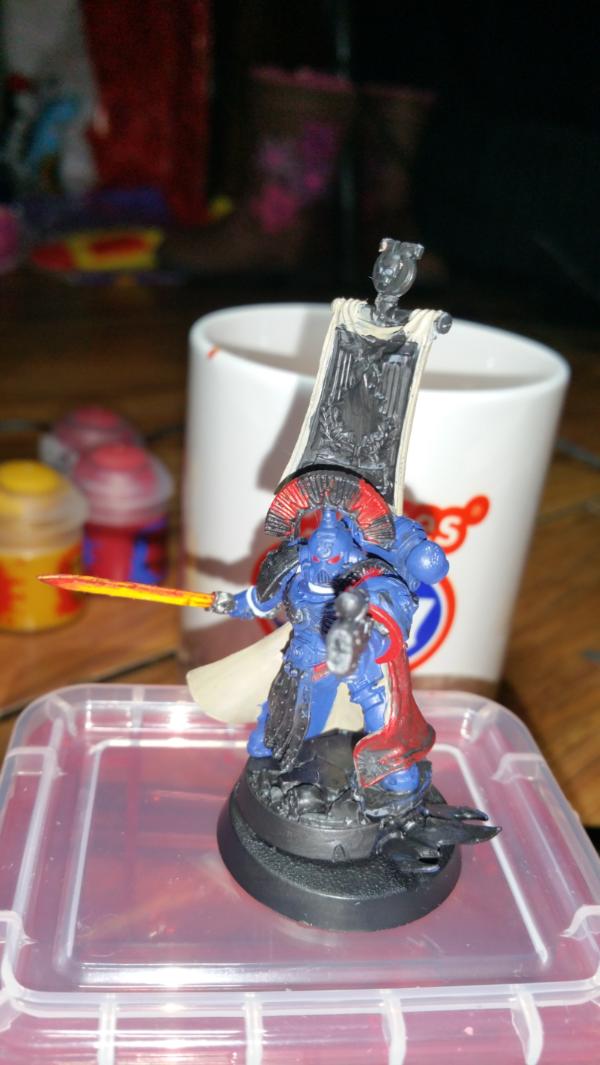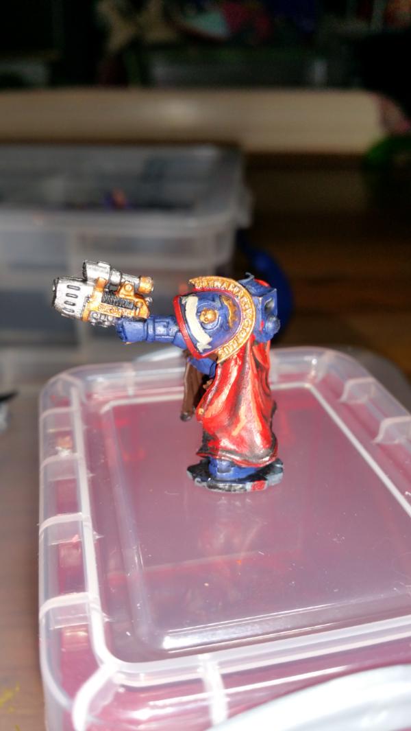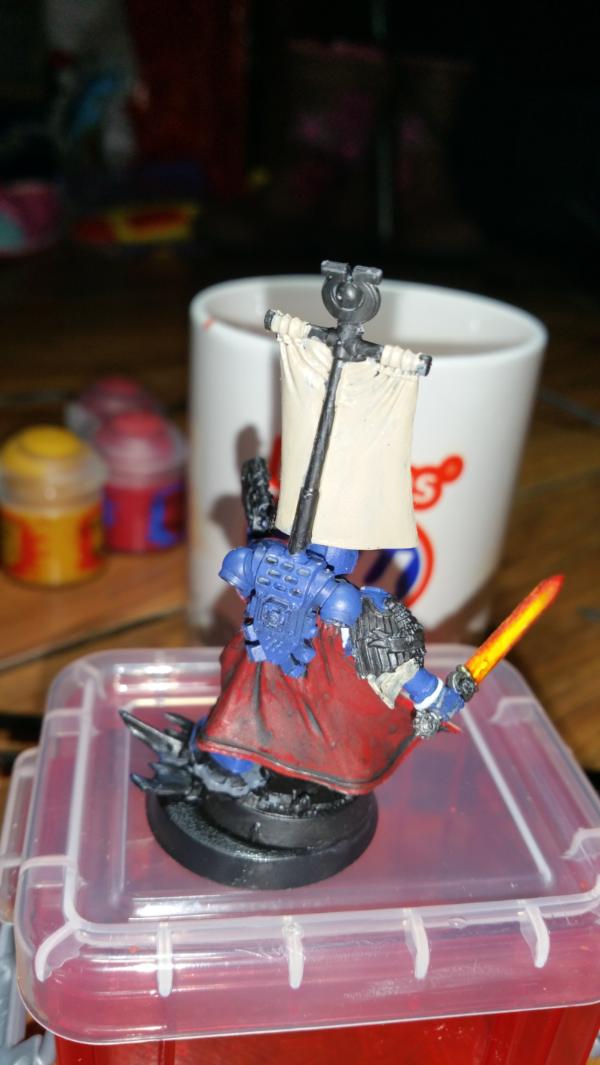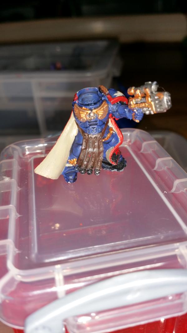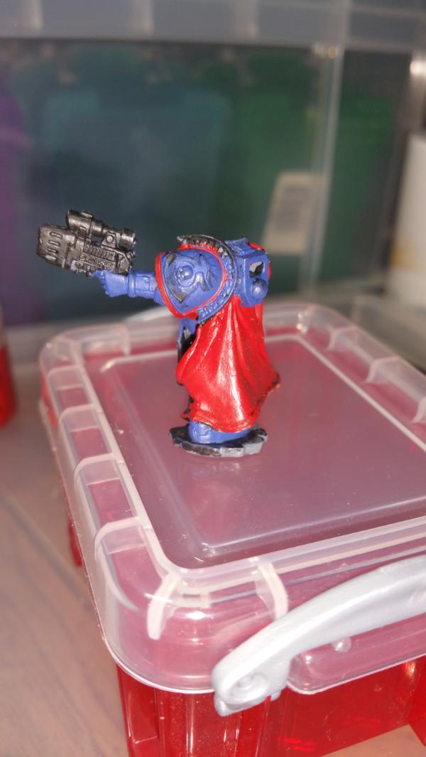 This update is barely worth the forum space, but just shows that I do sometimes paint, first layer of Macragge blue applied to the body and head, the rest is merely undercoated. Hopefully more to come tonight.