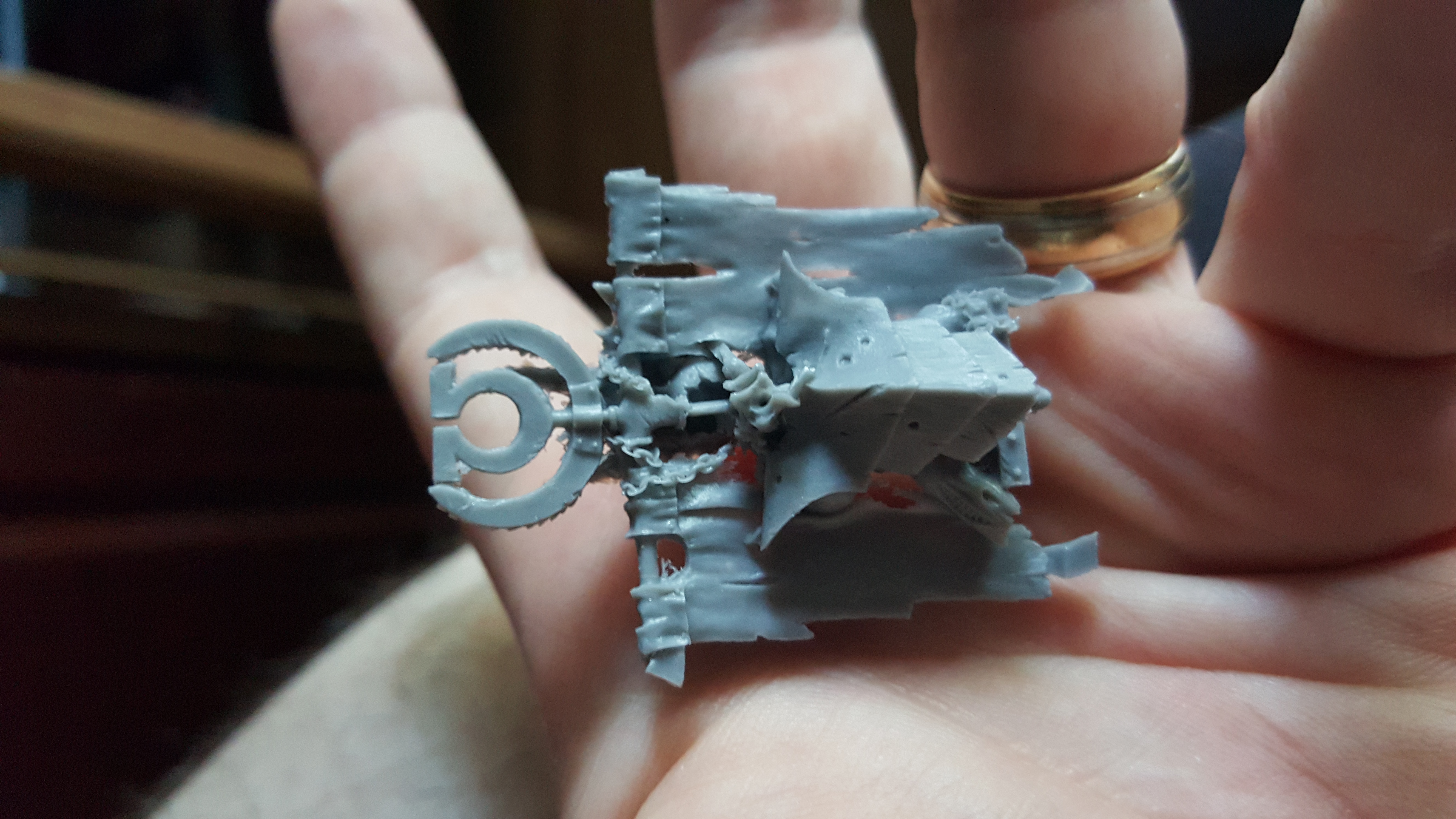 DKoK commissar. Anyone know what bits the banner is made from? Looks like a bit of everything but I can't tell the pieces. I see a Tyranid shell in there as well.