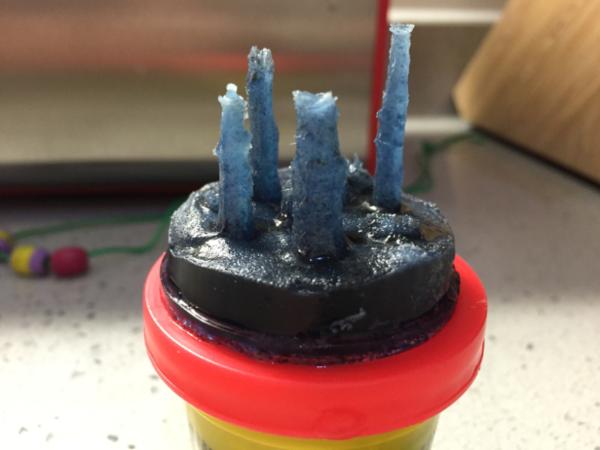 After a bit of picking off of Play-Doh and running under a tap to wash away residual Play-Doh this is what you get: