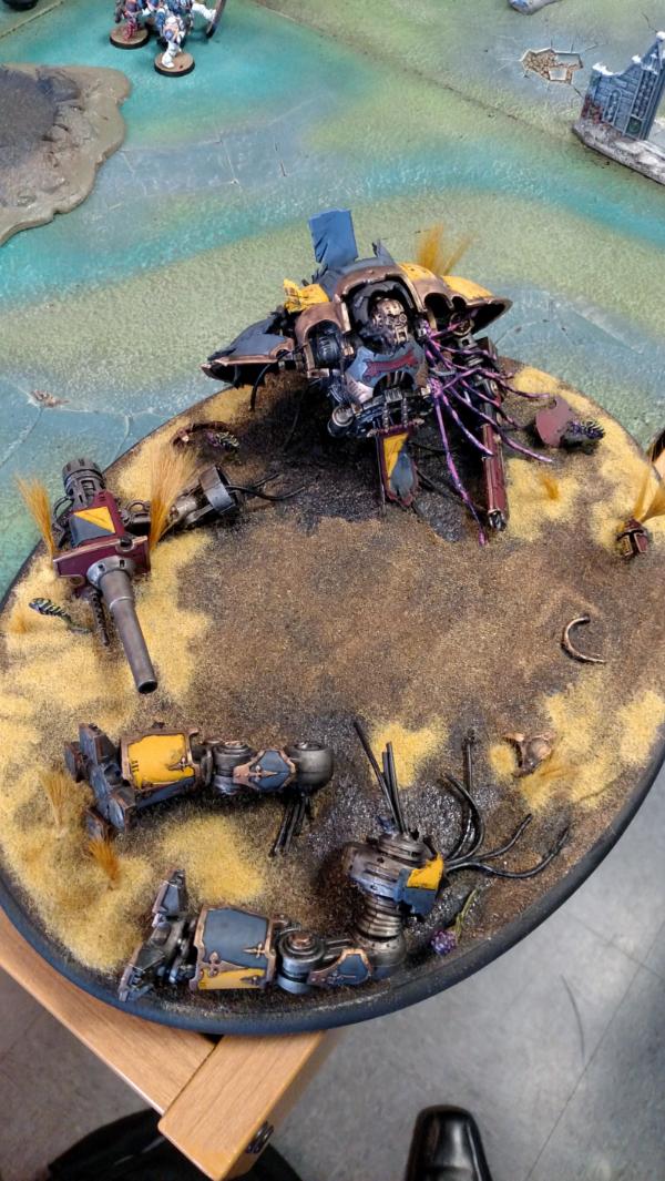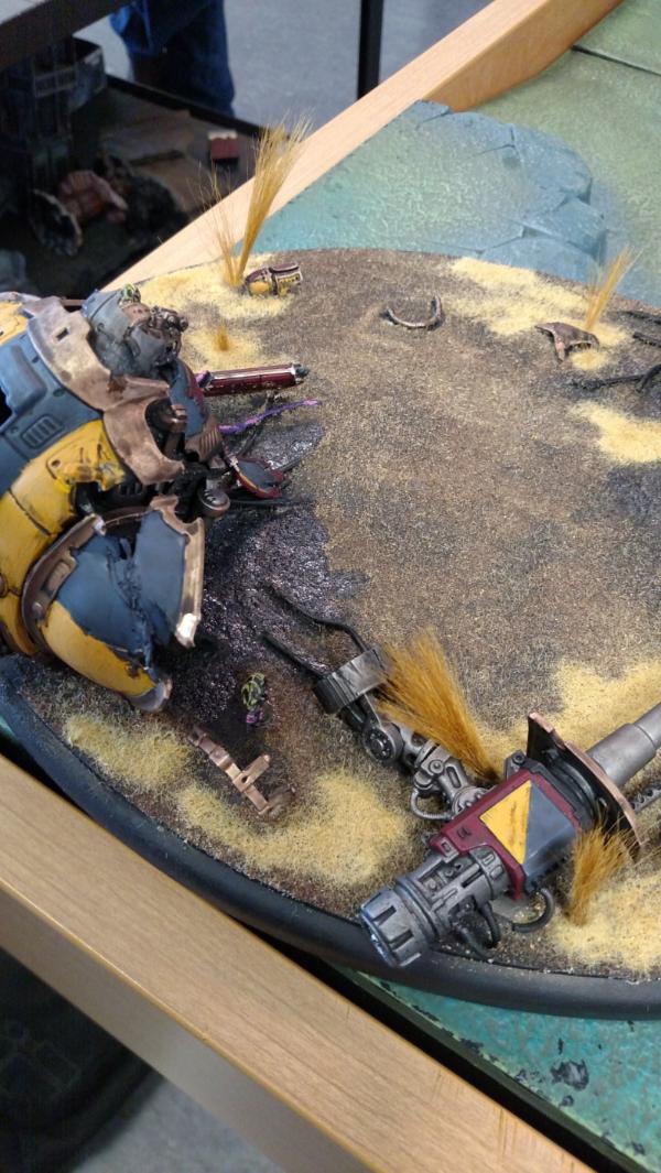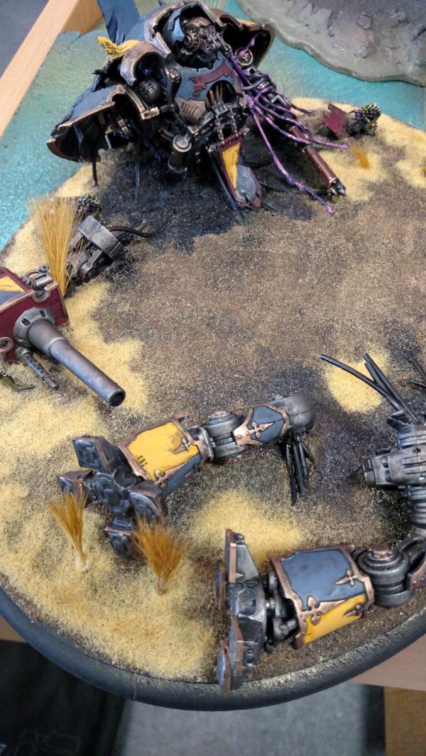 Sunday DAY 3 i headed back to my local gaming store to show him the painted model and start on the basing. For the larger scenic base , not the CD already show in the last base. he had a kight titan he wanted ripped in half ( it was actually my idea but okay  ) started out like this