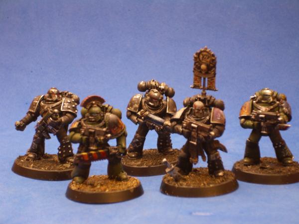 This was something of a challenge with my current army, a Horus Heresy force made up from the survivors of the 3 Loyalist Legions present at the dropsite massacre, the Salamanders, Iron Hands and Raven Guard. The problem was making each Legion look distinct, but also tying the force together so it looks good on the tabletop. Thus far, I think it's gone rather well, and there's a few things that have helped there,