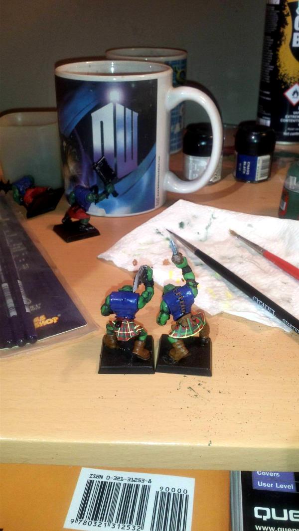 They are actually looking pretty good mate , I have not tried painting tartan myself but would say the chap on the left as we view it , with the red main colour is the best of the two
