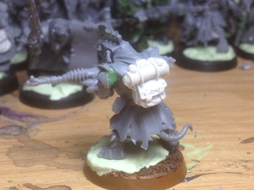 I also have received most of the steampunk backpacks and alternate weapons for the Skaven to represent different weapons. I also have started adding pouches and bags to the models. Finally, I have received a tentacle maker and kinda went nutso making tentacly bits for my higher level models. These will be painted metalic colors and serve as counts as servitor arms, power fists and servo harnesses. Well except for my battery guy. His tentacles are normal power conduits.