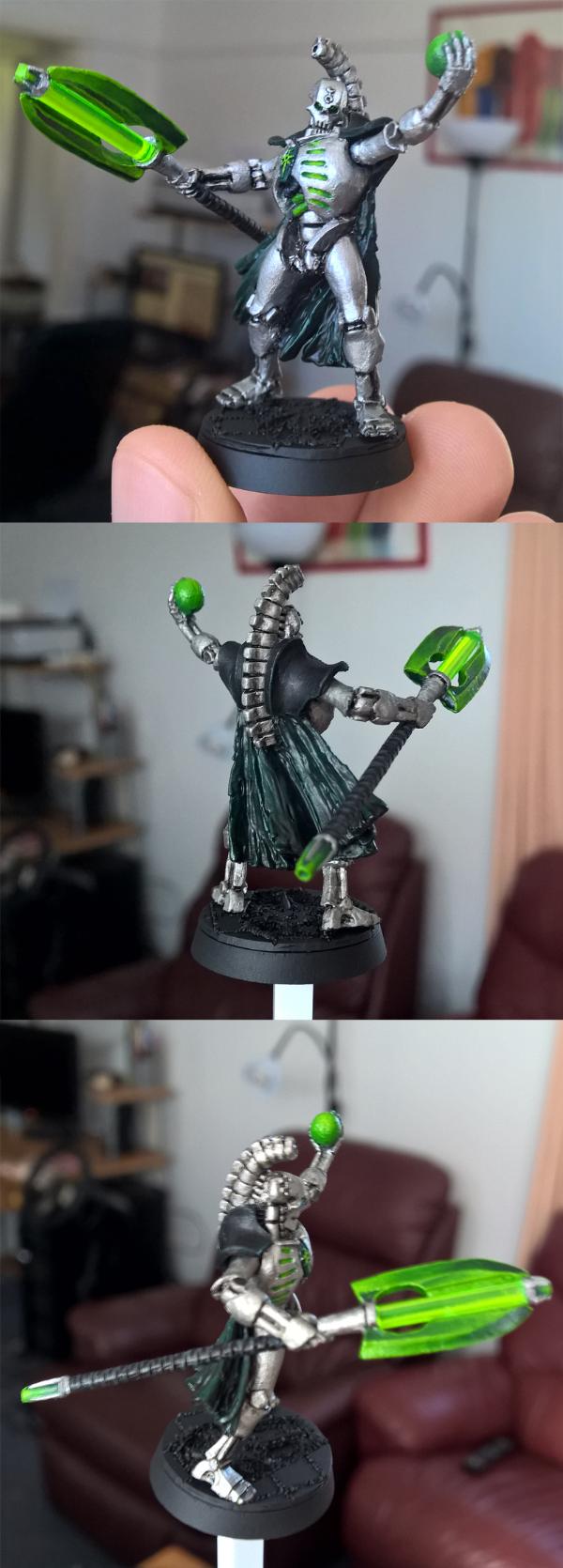 Just posting some pics of a Necron Lord I've been working on for a while. I kept putting off finishing him because I wasn't confident I could get the staff and cloak right, but in the end I said to hell with it and gave it a go.