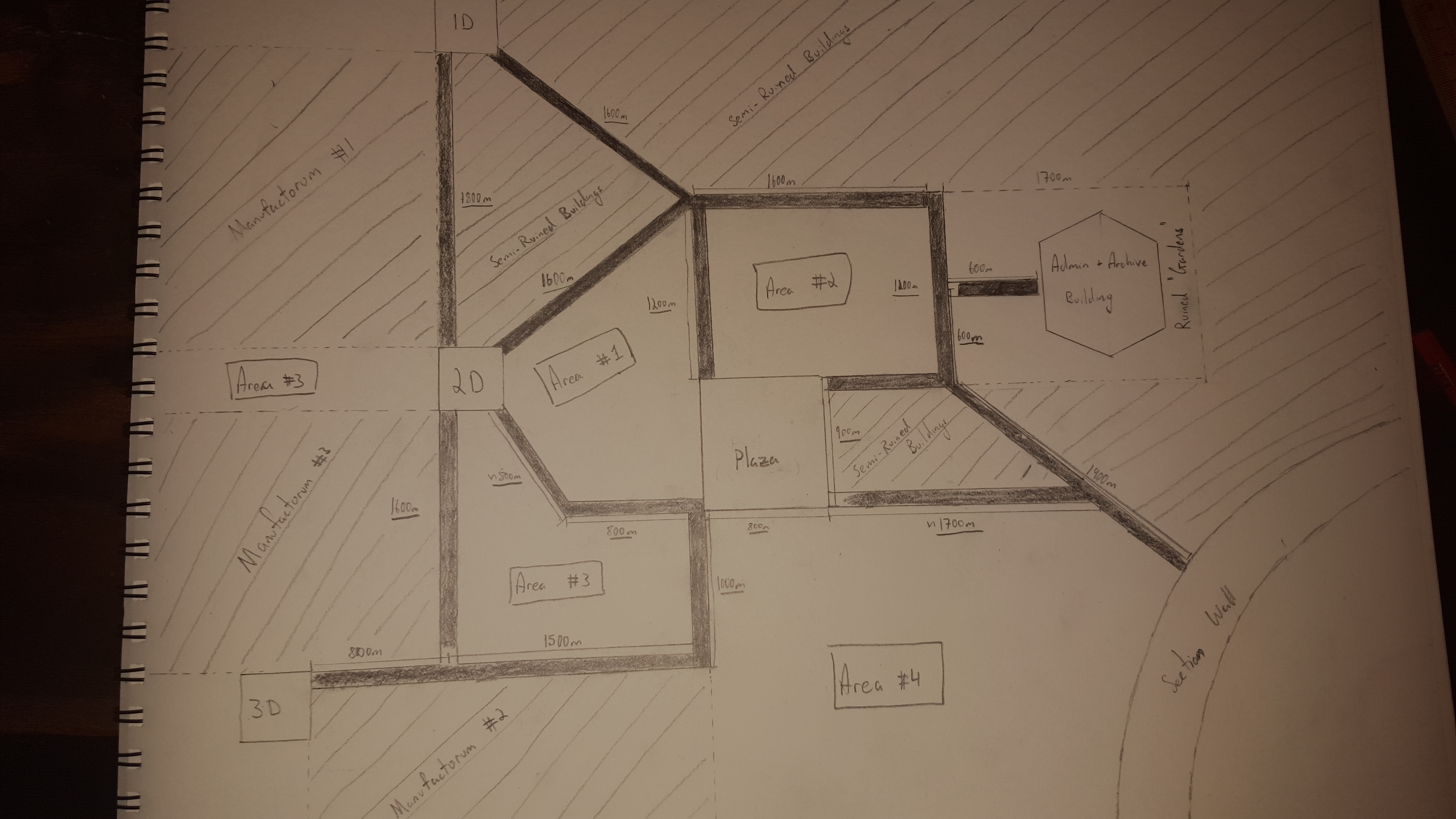 And now for another (minor) update and user contribution session. Attached to this post I have a first-pass image of what I want the battle area to look like. All the thin areas filled in with solid grey colouring are roads, most (if not all) have their lengths next to them. The little square areas with '1D', '2D' and '3D' are the deployment areas in the region. I'll leave you guys to figure out which deployment zones will house which regiments (Hint: it's already been posted as part of the fiction  ). All the other areas are labelled. There as also 4 areas labelled 1 through 4 which have no really impact on the story, but what they are may add some points of interest or ways in which I can guide the regiments through this industrial metropolis, so I'm curious to know what people think I could put in those areas that may add to the narrative or add a unique set of circumstances for our heroes.