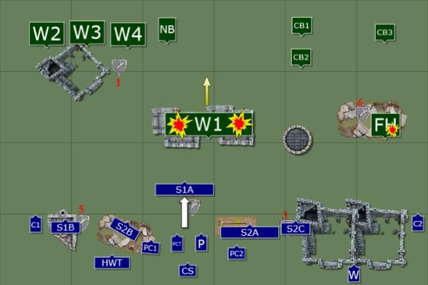 On the left flank, the Chaos bikers targeted Infantry squad 2C, killing 5 of the unit. The punishment was too much for the rest of the squad and they broke and fled from the battlefield. The second biker unit targeted Infantry Squad 2A, killing one of the squad.