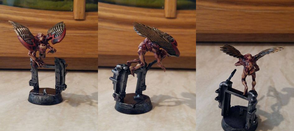 Next up we have the Inquisitors Familiar/Cherub Talon, a by-product of too many experiments into the effects of mutation (more on this when I get to writing some fluff up for the retinue). Made from a Vampire Counts Ghoul, tons of Green Stuff and Sanguinary Guard wings. Still
