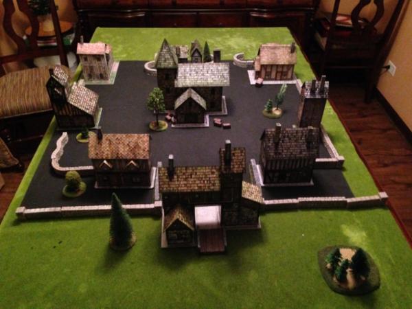 Shameless plug for Dave Graffam and his awesome terrain pieces! printed on plan thick paper and then hot glued + some foam-core, outstanding for low budget great looking stuff.