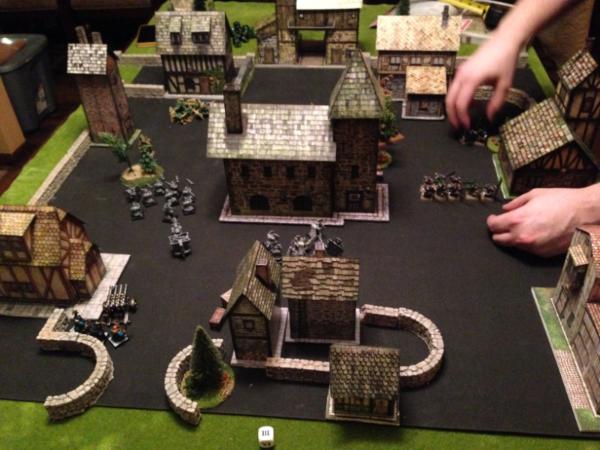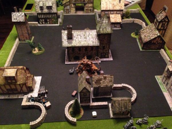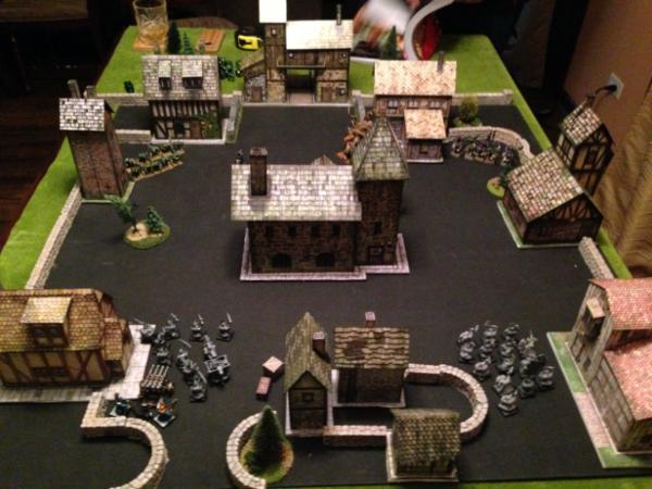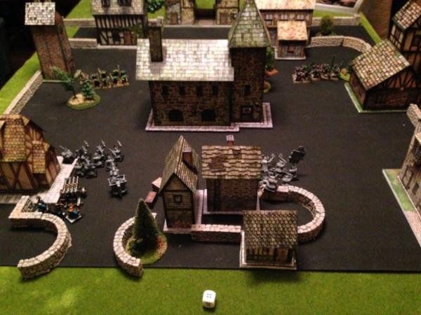 The objective as made up on the spot, was to reach the round edges pass the INN and the storehouse (right), by end of turn 6, with a foot troop.
