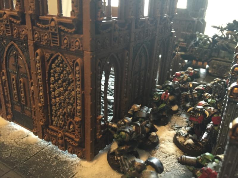 With the Orks firmly holding the road and closing the noose on the Techpriest Dominus and his few remaining forces, we declared an Ork victory. The forces of the Adeptus Mechanics withdrew from the planet, and the Imperium deployed its deadliest weapon on Skullingrad, ensuring no Ork would walk its streets again: