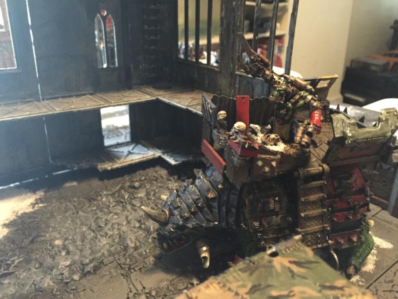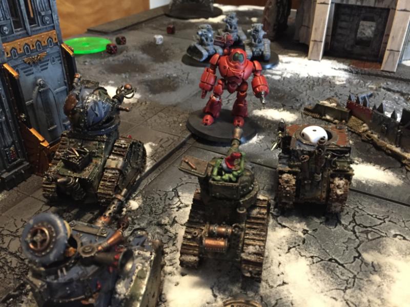 The Kastelan had killed a Grot Tank, and the surviving tanks drove off. Ol' Squiggly was closing in for the kill, ready to engage in some monster-on-monster action: