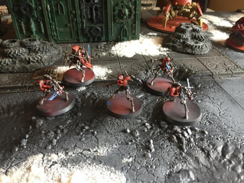 The Ruststalkers charge the Meganobz, intending to do some damage:
