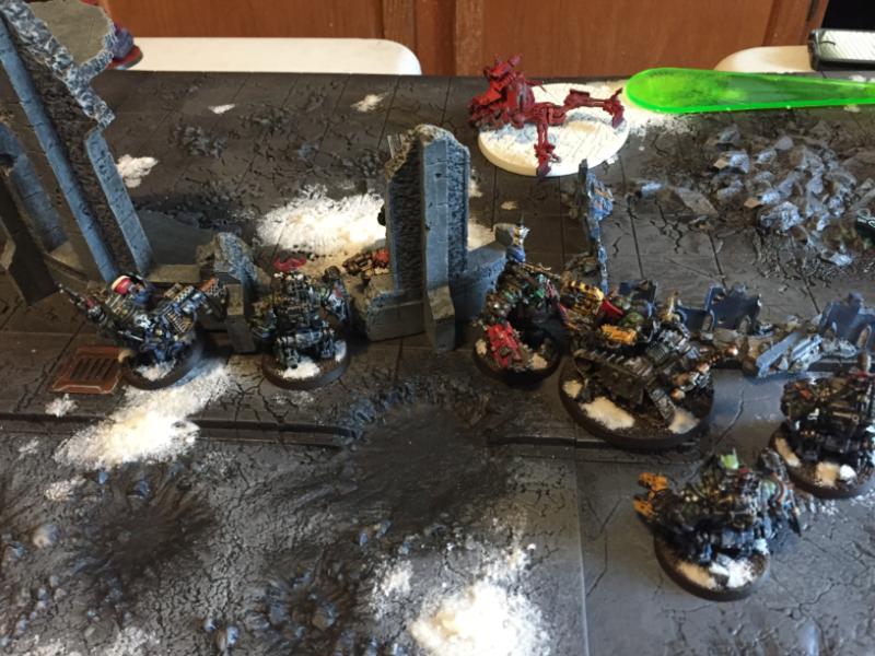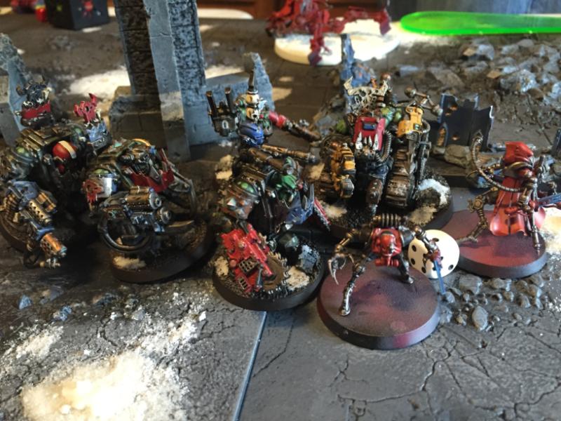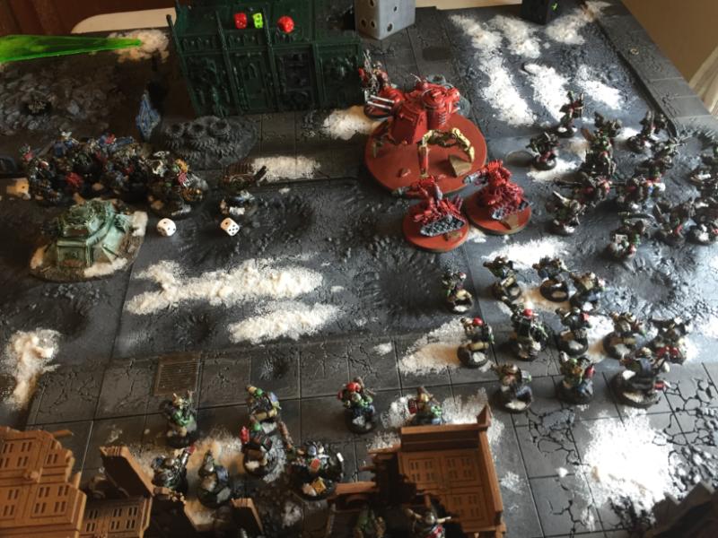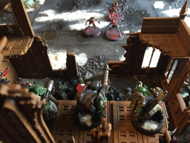 The Meganobz wiped out the stalkers and consolidated towards the warlord and his little castle: